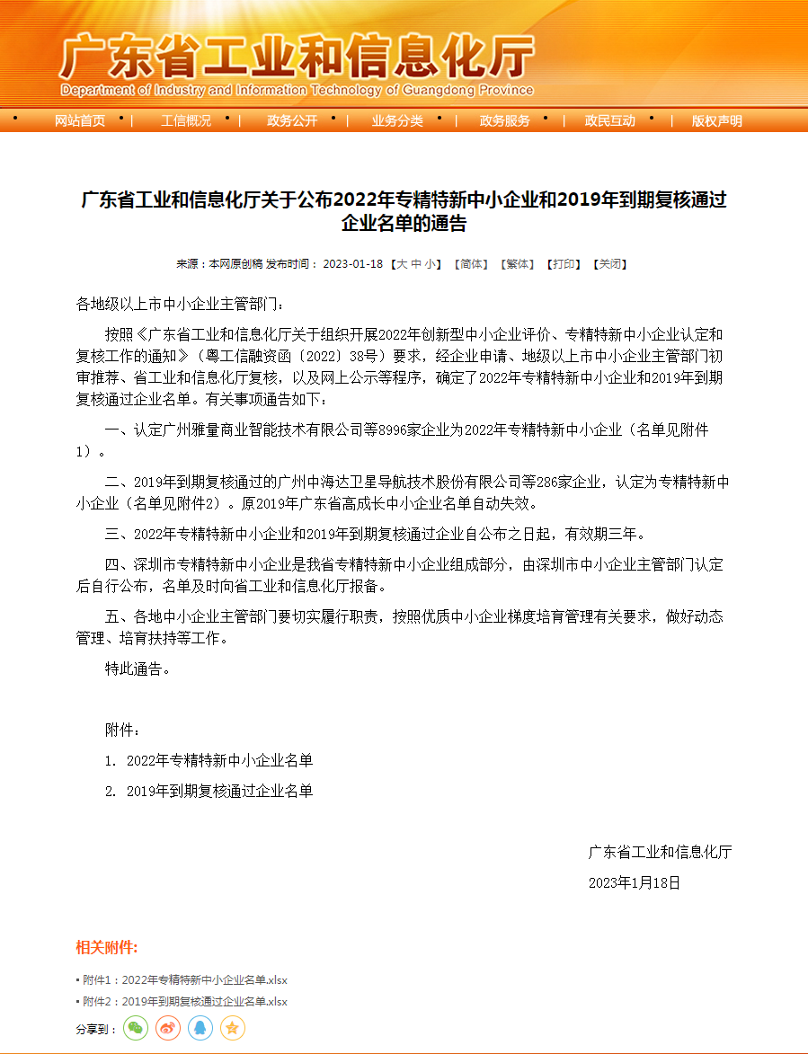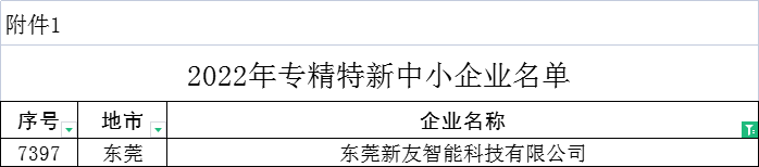 △2022年专精特新中小企业名单,东莞新友智能科技有限公司在列
